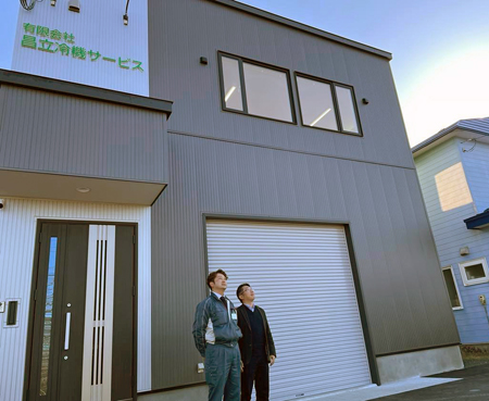 この度入会された新会員をご紹介します。【釧路地区会】==================■会員名:(株)ウィンクルム 代表取締役 中村 祐子さん■業務内容:スープカレー販売、店舗提供、厨房機器販売■推薦者:(株)コム 小川 睦子さん【釧路地区会】==================■会員名:(有)昌立冷機サービス 専務取締役 田向 隆之さん■業務内容:オゾン層を破壊しない新フロンガスを用いた冷却設備の設計、施工・保守■推薦者:ヤマレンエコスペース(株) 山本 連英さん(左)田向専務、(右)紹介者 山本社長